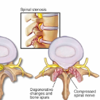 Это дегенеративное заболевание, при котором уменьшается пространство для невральных и сосудистых структур поясничного отдела, что является результатом дегенеративных изменений в позвоночном канале (Kreiner, 2013). Стеноз поясничного отдела позвоночника (СПОП) характеризуется иррадиирующей болью и онемением в ягодицах, бедрах или голенях, особенно при ходьбе или длительном стоянии. Боль обычно уменьшается, когда пациент находится в состоянии покоя, садится или наклоняется вперед. Данная патология вязана со старением и поражает в основном людей старше 60 лет (Mazanec, 2002).